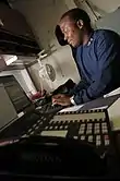 YNC Brett Lentz, Flag Administration Officer, checks the status of Carrier Strike Group (CVW) 11 personnel in the flag admin office aboard the USS Nimitz (CVN-68).
