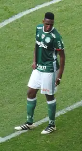 Mina made his debut for the club on 4 July 2016, playing a full game in a 3–1 away defeat of Sport Recife.[12] His first goal for the Verdão arrived in the following fixture, a 1–1 draw against Santos.[13] He was, however, rotated off just before the end of the first half due to an apparent injury. He was carried off the field on a stretcher, in tears. On 13 July it was confirmed that Mina would not recover in time for the 2016 Summer Olympics, with the recuperation from his injury expected to take six to eight weeks.[14]