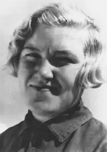 Yevgeniya Filippovna Prokhorova (Russian: Евгения Филипповна Прохорова; 17 November 1912 – 3 December 1942) was a Soviet aviator who briefly served as the acting commander of the 586th Fighter Regiment before she was killed in action during World War II. She is still the record holder of a World Record in height gain for a single-place glider.