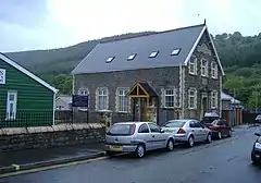 Ynysddu was founded in the early 19th century by the enlightened local colliery owner John Hodder Moggridge, who lived at nearby Woodfield Park.[3] It got its name from Ynsyddu Farm, which was built by Moggridge in 1804. Ynysddu comes from the Welsh descriptive words 'Ynys' ('island' or 'river meadow') and 'ddu' ('black').[4][5] 'Black river meadow' is appropriate for the landscape of the area.