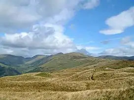 Yoke is not known to Lake District writers as one of the most attractive fells but it is climbed frequently as part of the Kentmere Horseshoe, a 19-kilometre (12-mile) walk with 1,100 metres (3,600 foot) of ascent that starts and finishes in the village of Kentmere and takes in the other fells of Kentmere Pike, Harter Fell, Mardale Ill Bell, High Street, Thornthwaite Crag, Froswick and Ill Bell. Most common direct ascents go via the summit of the Garburn Pass (Byway open to all traffic),[1] which can be reached either from Kentmere or Troutbeck. At the top of the pass the walker turns northwards following a wall over initial boggy ground to reach the summit of the fell. Some repair work has been done on these southern slopes of Yoke to address the problem of footpath erosion