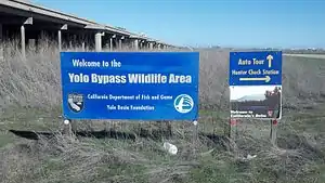 The Yolo Bypass Wildlife Area is located within the Yolo Bypass in Yolo County, California. The wildlife area is managed by the California Department of Fish and Wildlife with the intent of restoring and managing a variety of wildlife habitats in the Yolo Basin, a natural basin in the north part of the Sacramento-San Joaquin River Delta. The creation of the wildlife area was spearheaded by the Yolo Basin Foundation.[1] The California Department of Fish and Wildlife and Yolo Basin Foundation are the core partners in the operation of this unique community resource. Located at 38°33′02″N 121°37′35″W / 38.550515°N 121.626291°W / 38.550515; -121.626291