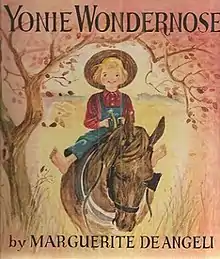 Yonie Wondernose is a 1944 picture book by Marguerite de Angeli, who would later win the Newbery Medal for The Door in the Wall.[1] Sometimes described as an "Amish Curious George", the book was to win the Caldecott Honor citation. As with many of de Angeli's books, she expressed interest in little-known and prejudged people. This was the second book she wrote about the Amish community, the first being Henner's Lydia.