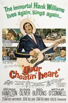 Your Cheatin' Heart is a 1964 American fictionalized biographical-musical directed by Gene Nelson and starring George Hamilton as country singer Hank Williams. It co-stars Susan Oliver and Red Buttons.