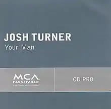 "Your Man" is a song recorded by American country music artist Josh Turner. It was released in July 2005 as the lead-off single and title track from his album of the same name. The fourth chart single of his career, it became his first number one hit on the US Billboard Hot Country Songs charts in early 2006. The song was certified Gold in 2006 by the RIAA, Platinum in 2012, Double Platinum in 2018 and Triple Platinum in 2021.[1] It has sold 1,307,000 copies in the United States as of November 2015.[2]