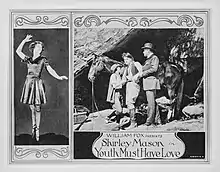 Youth Must Have Love is a 1922 American drama film directed by Joseph Franz and written by Dorothy Yost and Paul Schofield. The film stars Shirley Mason, Cecil Van Auker, Wallace MacDonald, Landers Stevens, and Clarence Wilson. The film was released on October 1, 1922, by Fox Film Corporation.[1][2][3]