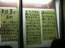 In April 2018, Yue led #MeToo-inspired protests against Peking University's attempted cover up of sexual assault allegations made against their staff.[4][5] Later that year, she joined striking workers at the Jasic Technology plant in Shenzhen and became a leading member of the Jasic Workers Solidarity Group.[6][7] Yue disappeared shortly afterwards and was last heard from in January 2019, when Guangdong police circulated a video of her confessing to various crimes and denouncing her own activism.[8][9]
