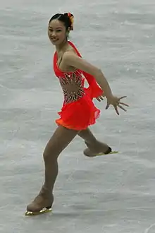 Nakano won her first Grand Prix medals in her fourth season on the circuit: bronze at the 2005 Skate Canada International and gold at the 2005 NHK Trophy. She qualified for the 2005–06 Grand Prix of Figure Skating Final where she took the bronze. She landed triple Axels in five consecutive competitions in 2005 (Yamanashi Kokutai 2005,[9] Kanto Gakusei Freeskating Championships,[10] Tokyo Figure Skating Championships,[11] Skate Canada International, and Asian Figure Skating Championships).[12] At the 2005 Skate Canada, she became the first woman to land a triple Axel under the ISU Judging System in ISU Senior level competition.[13] She placed 5th at the 2005–06 Nationals, missing a berth on the Olympic team. At the World Championships she finished 5th in 2006, 5th in 2007 and 4th in 2008.