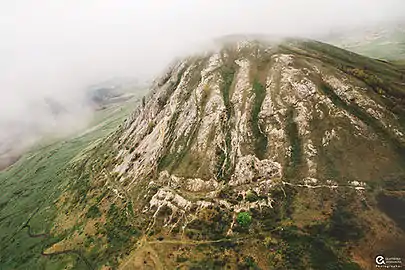 Has a conical shape. Slopes - 20-30 degrees, but do not form rocky ledges. The lower part is covered with scree. At the base of the northern slope of the mountain are springs, one of which is sulphurous.
