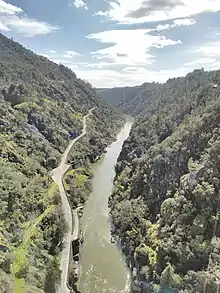 The Zêzere (Portuguese pronunciation: [ˈzezɨɾɨ]) is a river in Portugal, tributary to the Tagus. It rises in the Serra da Estrela, near the Torre, the highest point of continental Portugal. The Zêzere runs through the town Manteigas, runs through Belmonte, passes south of the city of Covilhã and east of the town of Pedrogão Grande. It flows into the Tagus in Constância. It is the second longest river entirely within Portuguese territory (the Mondego being the longest). Its slope allows for the hydroelectric powerplants of Cabril, Bouçã and Castelo de Bode.