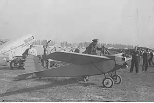 The prototype had simple, fixed landing gear, with wheels on a single axle which was mounted via rubber cord shock absorbers to the vertices of a pair of V-struts, one from each side of the lower fuselage. Production aircraft, had they been built, would have had more refined gear, with a split axle and aerodynamic drag reduced with streamlining.[1]