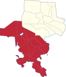 Zamboanga del Sur's 2nd congressional district is one of the two congressional districts of the Philippines in the province of Zamboanga del Sur. It has been represented in the House of Representatives since 1987.[3] The district encompasses the southern half of the province consisting of the municipalities of Bayog, Dimataling, Dinas, Dumalinao, Guipos, Kumalarang, Lakewood, Lapuyan, Margosatubig, Pitogo, San Miguel, San Pablo, Tabina, Tigbao and Vincenzo A. Sagun.[4] It is currently represented in the 18th Congress by Leonardo Babasa Jr. of the PDP–Laban.[5]