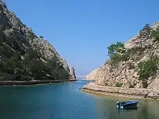 Zavratnica is a 900 m long narrow inlet located at the foot of the Velebit Mountains, in the northern part of the Adriatic Sea, 1 km south of Jablanac, Croatia. Regarded as one of the major tourist attractions of the northern coastal area because of its beauty, Zavratnica was designated a protected landscape in 1964.