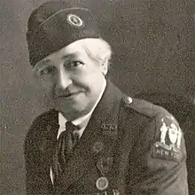During World War I she left Southampton for England during 1914 and 1915, where she served with the O.H.M.S Volunteer Motor Corps[12] and was appointed as a recruiting sergeant.[13] With funds raised from the citizens of Southampton she bought an ambulance in France and drove it between the front line and hospitals.[11][14][15] For her wartime work she received the French Croix de Guerre, the Gold Medaille de la Reconnaissance francaise, citations from three front line hospitals and the town of Verberie, France.[16][17]