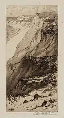 In 1923 De Milhau submitted a colored mezzotint print to the Seventh Annual Exhibition of the Brooklyn Society of Etchers. Her print "Boats Along Shore" would to cause sea lovers to "long for the tang of its air" according to Ernest G. Draper of The Brooklyn Museum Quarterly.[19]