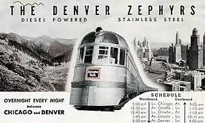 - ↑ Zimmermann, Karl (2004). Burlington's Zephyrs. Saint Paul, Minnesota: MBI Publishing Company. pp. 57–59. ISBN 978-0-7603-1856-0.