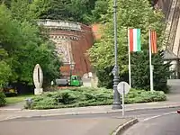 Physical location of Zero Kilometre Stone in Hungary, at the entrance of the tunnel near Lánchíd, Budapest