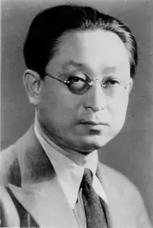 Zhang Shenfu (Chinese: 张申府; 1893–1986), born Zhang Songnian (张崧年), courtesy name Shenfu (申甫), was a founder of the Chinese Communist Party, a philosopher, and a political activist.[1][2] Zhang was born on June 15, 1893, in Xiaoduo village, Zhili (modern Hebei). His father, Zhang Liangong, was a senior official. In 1912, Zhang enrolled at Middle School Affiliated to Senior Normal School (高等师范学堂附属中学班) in Beiping (today Beijing). He later enrolled at Peking University to study philosophy and math in 1914. After graduating, Zhang started to lecture at Peking University, as well as assisting the work of university librarian Li Dazhao. When the Chinese Communist Party was founded by Chen Duxiu and Li Dazhao in the French concession of Shanghai in 1921 as a study society and informal network, Zhang organized the counterpart group in France (latter used to engage in Lyon Sino-French University after WWI) and then introduced his fiancée Liu Qingyang and friend Zhou Enlai to CCP. In 1925, due to disagreements with other representatives at the fourth congress, Zhang quit the party. After CCP won the Chinese Civil War, Zhang was employed as a researcher at the National Library with Zhou Enlai's permission. Due to his political stance, Zhang was labeled as right-wing in 1957 during the Anti-Rightist Campaign. After Mao's death and the 3rd Plenary Session of the 11th Central Committee, he was rehabilitated. He died in 1986 at 93 years old.[3]