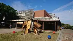 The center was designed by Kuo Jun-pei Architectural Firm with Hakka architectural style forming a circular house.[3] The center spans over an area of 0.8 hectare and consists of two floors. The ground floor is used for normal activities and the upper floor is used for specific activities. Dynamic activities are held at the atrium and outdoor plaza. It was constructed with a total cost of almost NT$100 million.[2]