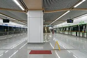 Platform of Line 4 toward Pengbu (right) and Line 6 toward Goujulong (left)