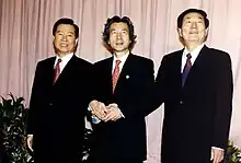 Zhu's position on Taiwan changed over the course of his time as premier. During the 2000 ROC presidential election in Taiwan, Zhu warned Taiwanese voters not to vote for the DPP, which favors distancing Taiwan from China, stating, "those who are pro-Taiwan independence will not have a good ending."[29] His attitude towards Taiwan changed after the election. Three years later, in his farewell speech to the National People's Congress in 2003, Zhu encouraged Chinese politicians to use softer language in discussing the issue of Mainland China-Taiwan relations, saying that Mainland China and Taiwan should improve economic, transportation, and cultural ties in order to improve their relationship. During the speech Zhu accidentally referred to China and Taiwan as "two countries" before quickly correcting himself and referring to them as "two sides". The incident was reported in Taiwanese media as a "gaffe".[30]