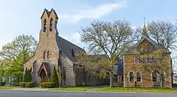 Zion Church is a historic Episcopal church building located in Rome, Oneida County, New York. The church was designed by noted national church architect, Richard Upjohn, (1802-1878), built in 1850. It is a three-by-four-bay structure built of bluestone in the Gothic Revival style. Located adjacent is the stone "Clarke Memorial Hall" designed by local designer Frederick Hubbard and built a quarter-century later in 1884–1885.[2]