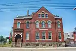 Both the school and the church are brick buildings with stone foundations and additional elements of stone. The church is in the Gothic Revival style of architecture, while the school building mixes elements of the Queen Anne and Colonial Revival styles.[1] The school is no longer used as such, with classes having ceased in 1974.[4] In 1984, Zion Lutheran Church and School were each listed on the National Register of Historic Places, both qualifying because of their historically significant architecture and because of their role in local history. The two were part of a multiple property submission of buildings along Prospect Avenue, along with nearby buildings such as First Methodist Church, the Phillip Gaensslen House, and the Dr. William Gifford House.[1] They have also been given city historic-landmark designation,[5] and their location at Prospect and E. 30th is located within the city-designated Prospect Avenue Historic District.[6] The congregation was a founding member of the Lutheran Church–Missouri Synod (LCMS),[4] within which it has remained.[7]