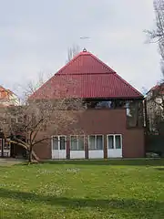 The Zionskirche is the name given to two Evangelical Lutheran church buildings in the Südvorstadt district of Dresden. The first, the Alte Zionskirche, was built by Schilling & Graebner from 1908 to 1912. This building was hit and badly damaged by fire during the bombing in February 1945. A temporary roof was later added and it is now preserved as a ruin, housing a lapidarium with 3000 sculptures. The parish, meanwhile, was housed in a barracks next to the ruins until the first stone of a new building, the Neue Zionskirche, was laid on Bayreuther Straße on 5 June 1981, as a gift from the Church of Sweden. With its construction overseen by Eberhard Burger, the new building was inaugurated on 31 October 1982.