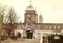 The church was again restored in 1907–1908; its domes were damaged in the 1940 tremor. These were repaired provisionally and given their current form in 1971–1973. Until the late 1970s, the church stood alone between Lipscani and Stavropoleos Streets, with green space covering the inn's foundation. At that point, one apartment block was built on either side.[1]