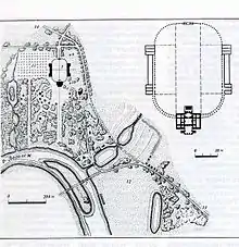 The architectural ensemble of the estate includes the manor's house and an oval-shaped colonnade connected to the side wings and a double dome above the central hall. the facade on the park side aligns with the river; the park includes a pond with an man-made island and pathways.[3] Most of the pavilions and gazebos from the manor park have been lost.