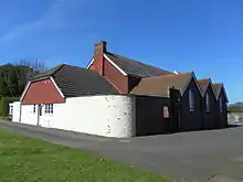 The cause was prosperous and relatively wealthy compared to other Strict Baptist chapels,[19] and to cater for the large number of worshippers the building was extended in 1874 at a cost of £600.[9][14] Worshippers came from many miles around, as was common in rural areas, and the chapel was built with stabling for 40 horses and carts for the benefit of those who rode to Lower Dicker.[13] These facilities were erected before 1875 and consisted of "a long brick-and-tile building".[14] A terrace of houses called Chapel Cottages were erected on behalf of a member of the congregation in 1875, and the small burial ground next to the chapel was enlarged to the rear in 1880.[14]