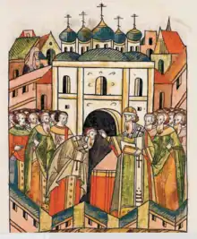 Archbishop Gennady of Novgorod had uncovered the Heresy of the Judaizers in 1487 and Zosimus's entire metropolitanate was overshadowed by this crisis. Gennady wrote a letter in 1490 to Zosimus and other bishops in the Russian church demanding a council be convened and the heresy be dealt with. The council convened less than a month after Zosimus' elevation to the metropolitan throne and condemned the heresy.[2] Gennady demanded that the heretics be severely punished - hanged and burned - and not merely incarcerated, but Zosimus and Grand Prince Ivan III opposed these harsher methods. Zosimus was eventually accused of being a secret heretic and, on 17 May 1494, he was removed from the metropolitan throne on charges of heresy and sodomy.[3] He died before any trial was held.